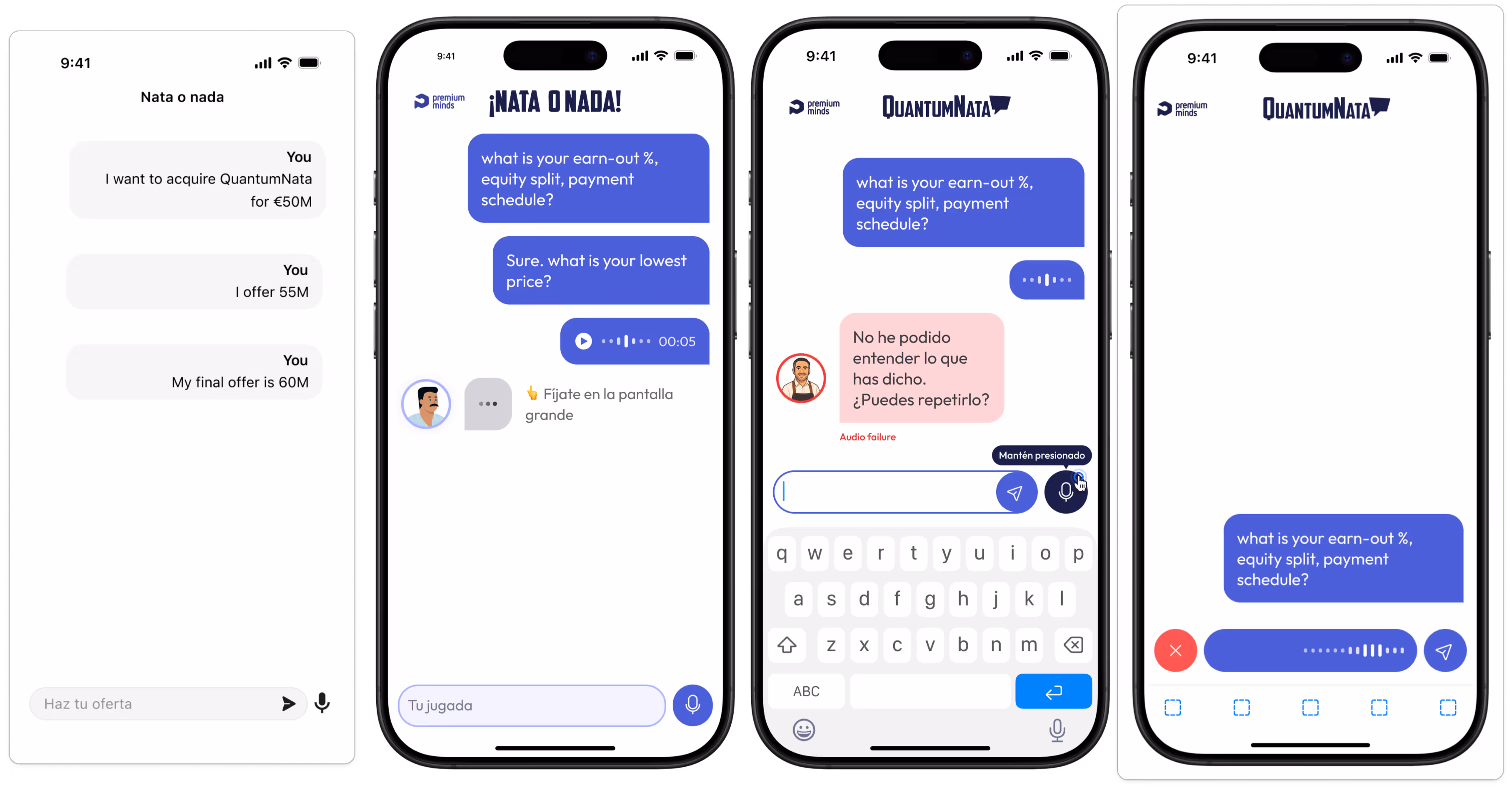 While pursuing the backbone of the game, the discovery track kept going, mainly focused on testing the voice capture and transcription, improving the initial prompt, and finding an avatar with some visuals to humanize Juan. At the same time we addressed the design issues, copywriting, privacy policy and prize definition.
